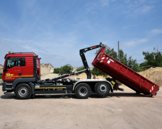 - transportiert alle Arten von Baustoffen wie Kies, Sand, Füllkies, Mineralgemisch, Asphalt, Steine (auch auf Paletten)