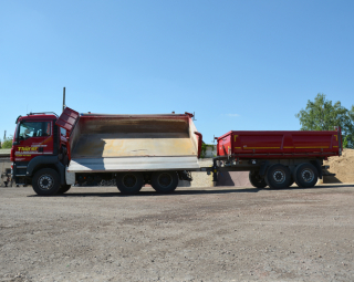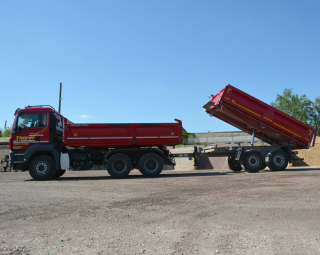 - transportiert alle Arten von Baustoffen, wie Kies, Sand, Füllkies, Mineralgemisch, Asphalt, Steine