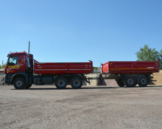 - transportiert alle Arten von Baustoffen, wie Kies, Sand, Füllkies, Mineralgemisch, Asphalt, Steine