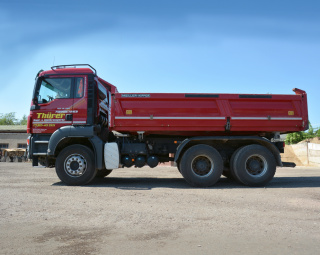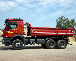 Insgesamt besitzen wir 13 Mercedes Benz Lkws, 4 MAN Lkws, 3 Anhänger,